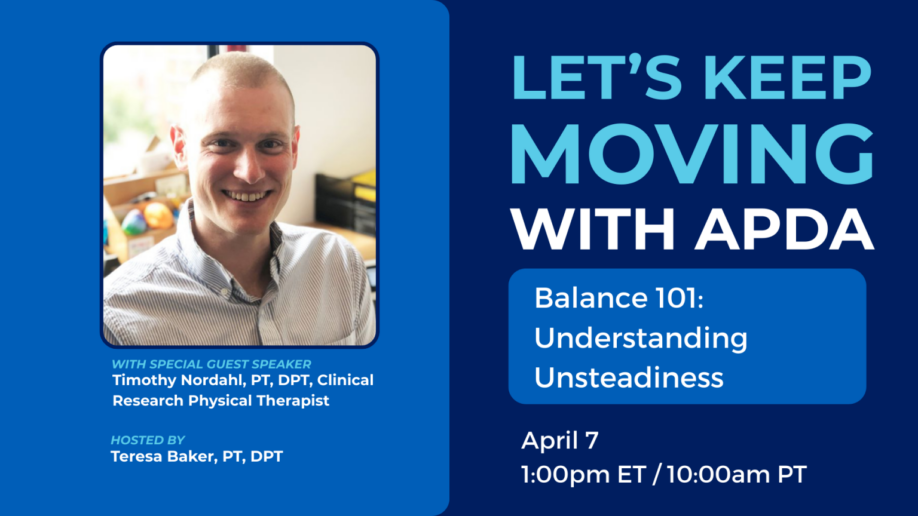 Register now for “Balance 101: Understanding Unsteadiness,” a webinar by the American Parkinson Disease Association (APDA). This is the first episode of a three-part series exploring balance in Parkinson’s disease (PD). The speaker will cover why balance changes occur in PD, what contributes to feelings of unsteadiness, and what specific aspects of balance are affected.